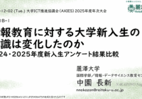 2025年12月1日(月)~3日(水)に札幌コンベンションセンターで開催された、大学ICT推進協議会(AXIES)2025年度年次大会において発表を行いました。 高校での情報教育について、昨年のAXIES2024では旧学… 続きを読む »